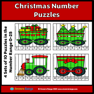 This resource is aimed at pupils in junior/middle classes or AEN pupils who are working on early number. It is based on the consolidation of numbers in the range 0-25. The resource features four sets of ten puzzles with a Christmas train theme. (Set 1: 0-9; Set 2: 1-10; Set 3: 6-15; Set 4: 16-25)