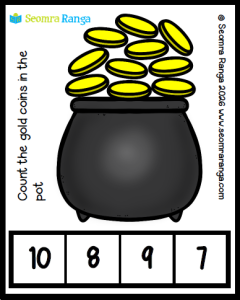 This seasonal peg-based St. Patrick’s Day maths resource is aimed at pupils in junior classes or AEN pupils at the beginning of work on numeracy. It is based on the pupil’s knowledge of number/word association of numbers 0 – 20.