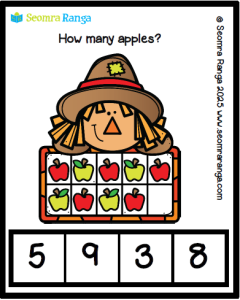 This seasonal peg-based Maths resource is aimed at pupils in junior/middle classes or AEN pupils who are working on early number. The resource features autumn apples for pupils to count. It focuses on the numbers 0 – 10.