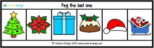 This seasonal resource is aimed at pupils in junior classes and/or AEN pupils. It focuses on ordinal numbers and positional language, which can pose some difficulties for pupils. It consists of 14 cards, each with six Christmas-themed images. The pupil is asked to place a clothes peg on one particular image on each card.