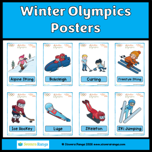 This resource consists of a set of 20 illustrated posters to make younger pupils aware of the different sports that make up the Winter Olympic Games which commence in Milano-Cortina, Italy on February 6th. Each poster contains a cartoon image of the sport as well as a clear naming label.