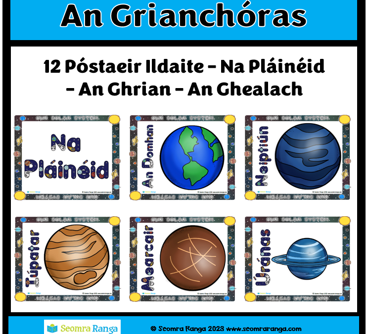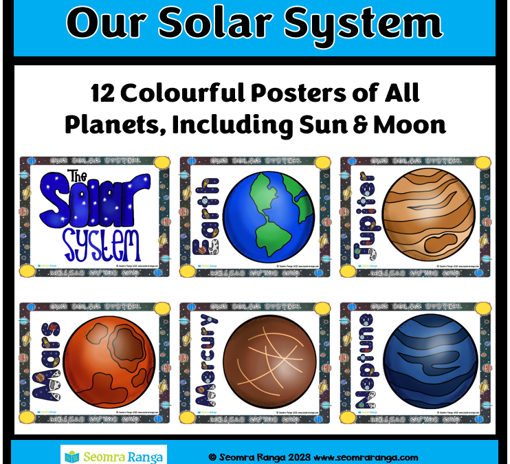 This series of posters on the Solar System is a perfect display resource to mark Space Week in your classroom/school. It features 12 colourful posters as Gaeilge of each of the eight planets as well as posters for the sun and the moon. Each poster features an image of...