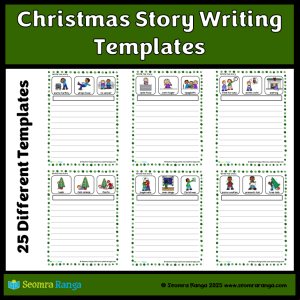 This seasonal resource is aimed at providing pupils in junior/middle classes with picture prompts for practising their narrative writing skills. Each writing template contains three Christmas-themed images. The job of the pupil is to connect these three elements into a piece of narrative writing. The resource contains 25 different story writing templates.